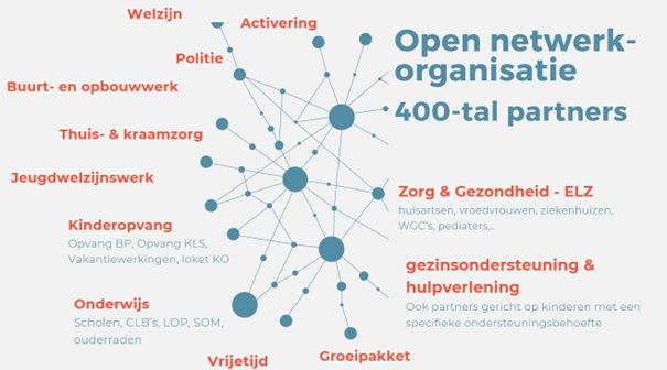 Het Huis van het Kind is een open netwerkorganisatie, waar meer dan 400 netwerkpartners in vertegenwoordigd zijn, om de noden van gezinnen in al hun diversiteit zo goed mogelijk te capteren.