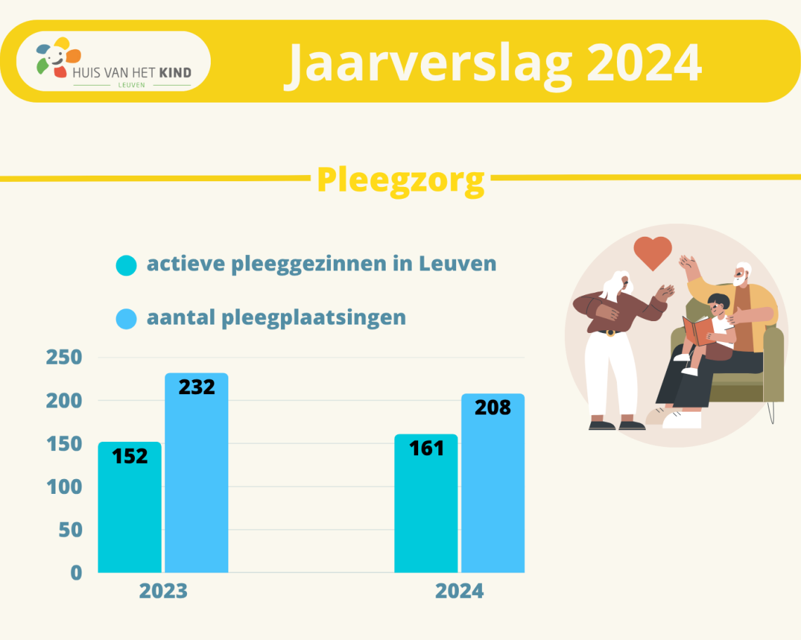 In 2024 waren er 161 actieve pleeggezinnen in Leuven. Het aantal pleegplaatsingen in 2024 bedroeg 208. Ook in 2024 zijn er acties gepland om pleegzorg bekender te maken bij Leuvenaars.